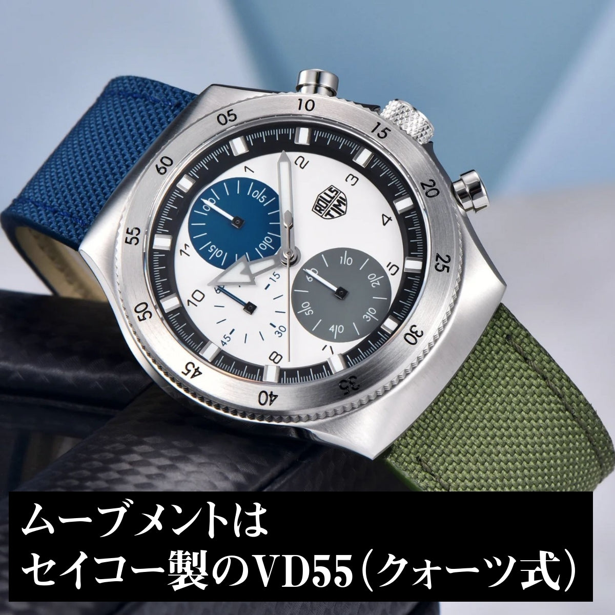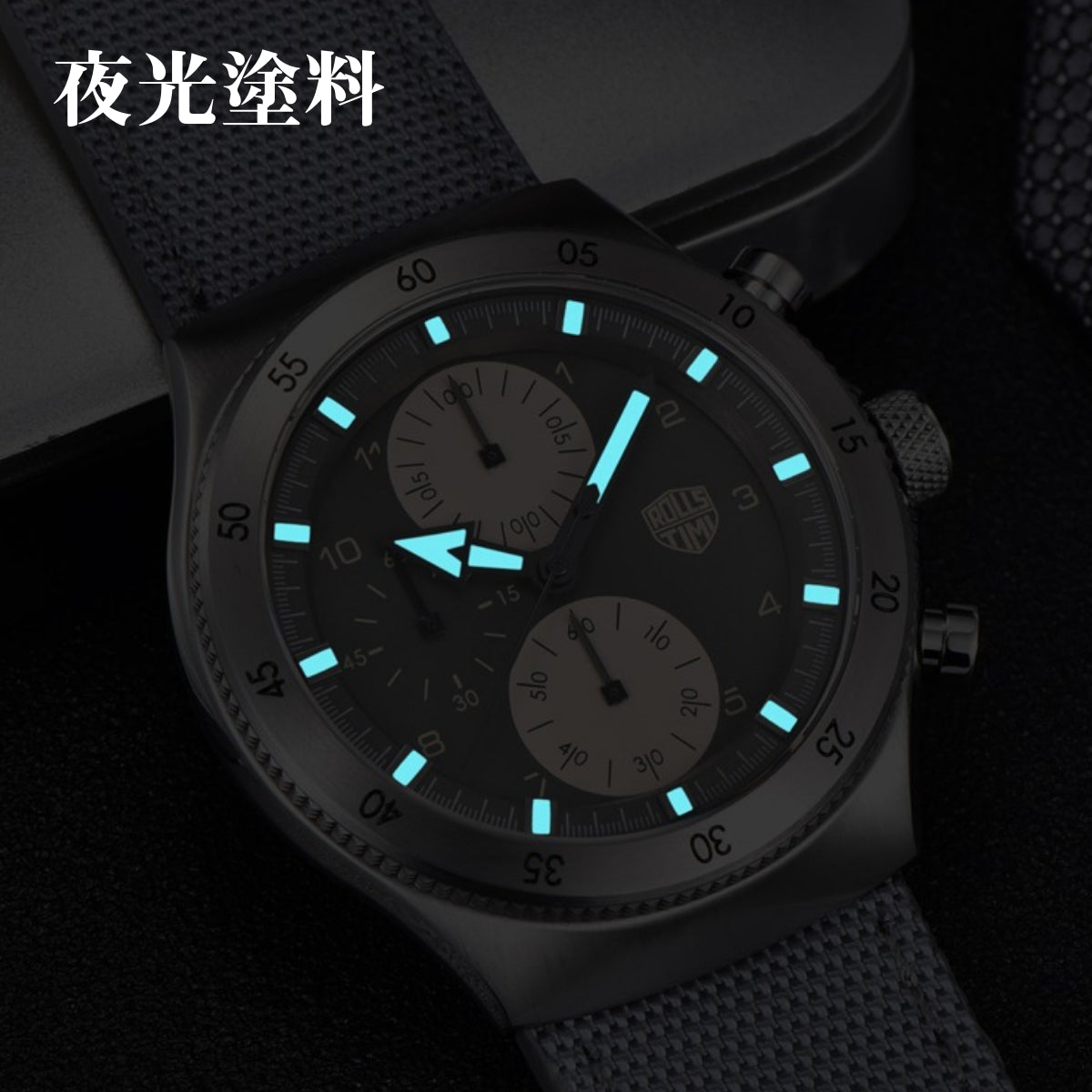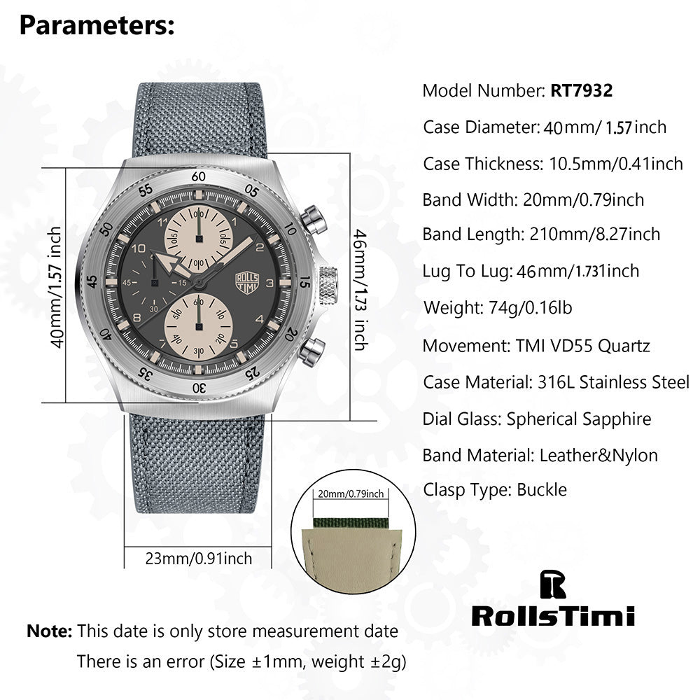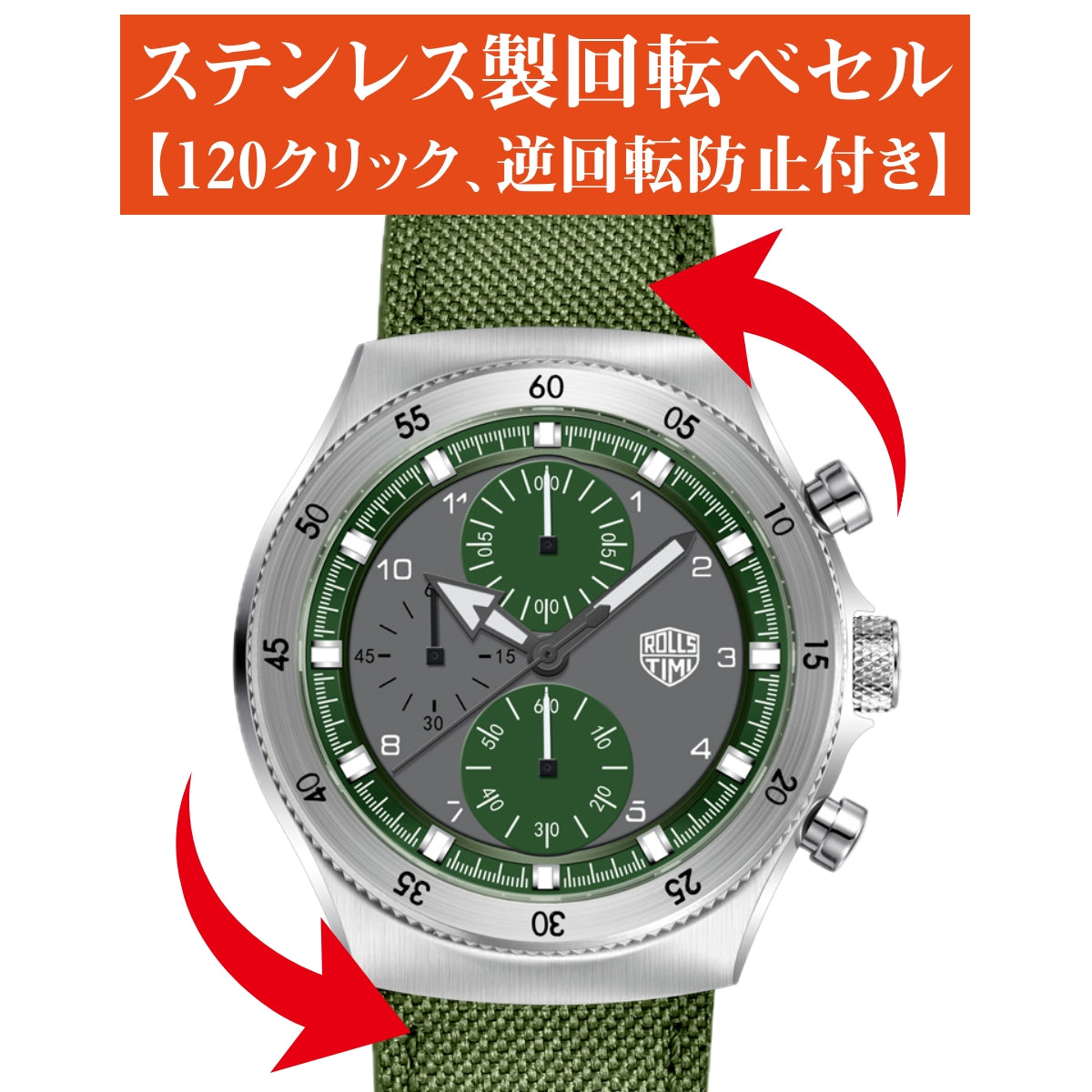 腕時計 メンズ 40代 50代 クロノグラフ クォーツ ナイロンベルト 革 回転ベゼル 5気圧防水 Rolls Timi RT-7932