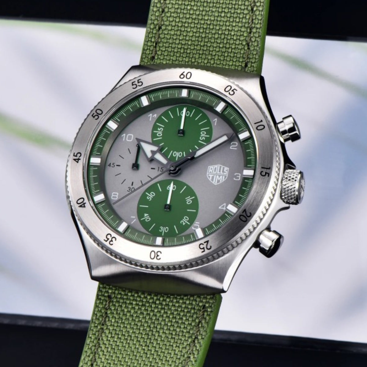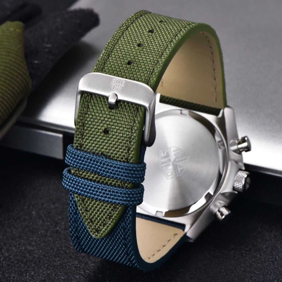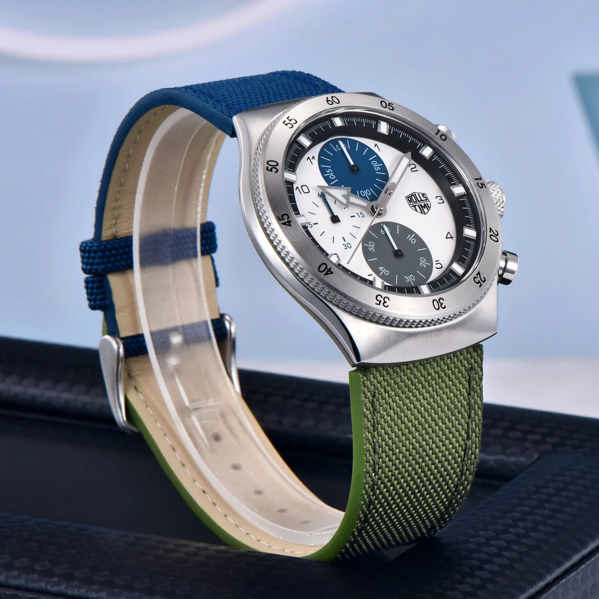 腕時計 メンズ 40代 50代 クロノグラフ クォーツ ナイロンベルト 革 回転ベゼル 5気圧防水 Rolls Timi RT-7932